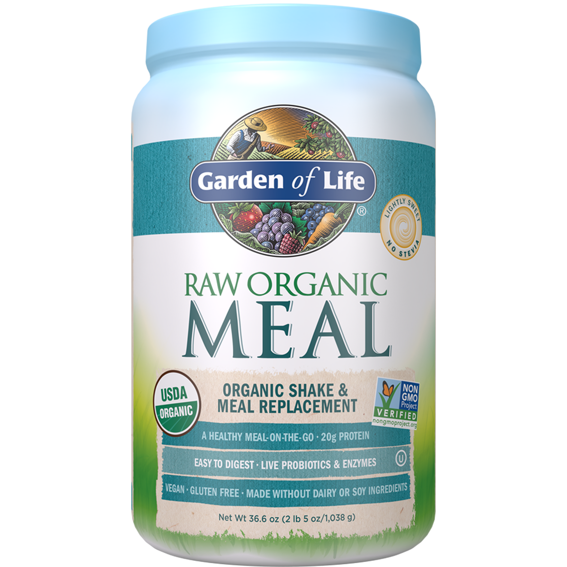 Raw Organic Meal is a delicious organic MEAL-ON-THE-GO packed with incredible nutrition to help you satisfy hunger, manage weight and feel great! Raw Organic Meal uniquely combines the goodness of multiple Garden of Life products in one complete raw organic meal replacement. Basically, it has the nutrition of seven products in one container! Raw Organic Meal delivers 20 grams of clean protein per scoop from 13 raw sprouted ingredients, along with greens, healthy fat, 7g of Organic Fiber, probiotics, enzymes, plus 21 vitamins and minerals. You have a busy, on-the-go life and lifestyle, but you still want to eat healthy, so fast food is just not an option for you. Thats why theres Raw Organic Meal - convenient, organic shake and meal replacement thats packed with 44 superfoods that not only satisfies your hunger, but also is naturally filling while boosting energy, and provides you with the protein, fiber, vitamins and minerals you would find in a healthy shake or meal of raw foods. A one-scoop serving delivers 20 grams of clean Certified USDA Organic and Non-GMO Project Verified protein, while two scoops pack a whopping 40 grams of clean organic proteinall from 13 organic sprouted grains and seeds. RAW Organic Meal also includes fruits and vegetables, greens juices, has live probiotics and enzymes as well as 21 whole food vitamins and minerals. Just as important is whats not in RAW Organic Meal. It has no gluten, soy, dairy, tree nuts, filler ingredients, artificial colors, flavors, sweeteners or preservatives. And its RAWsince heat and processing can denature proteins. Raw Organic Meal Shake & Meal Replacement Benefits: Convenient organic, Raw shake and meal replacement Helps to support energy and lean muscle Helps you stay full and can help support a healthy weight 1.5 Billion live probiotics plus enzymes to support digestive health Raw Organic Meala yummy tasting organic meal-on-the-go packed with incredible nutrition to help you satisfy hunger, manage weight and feel great!