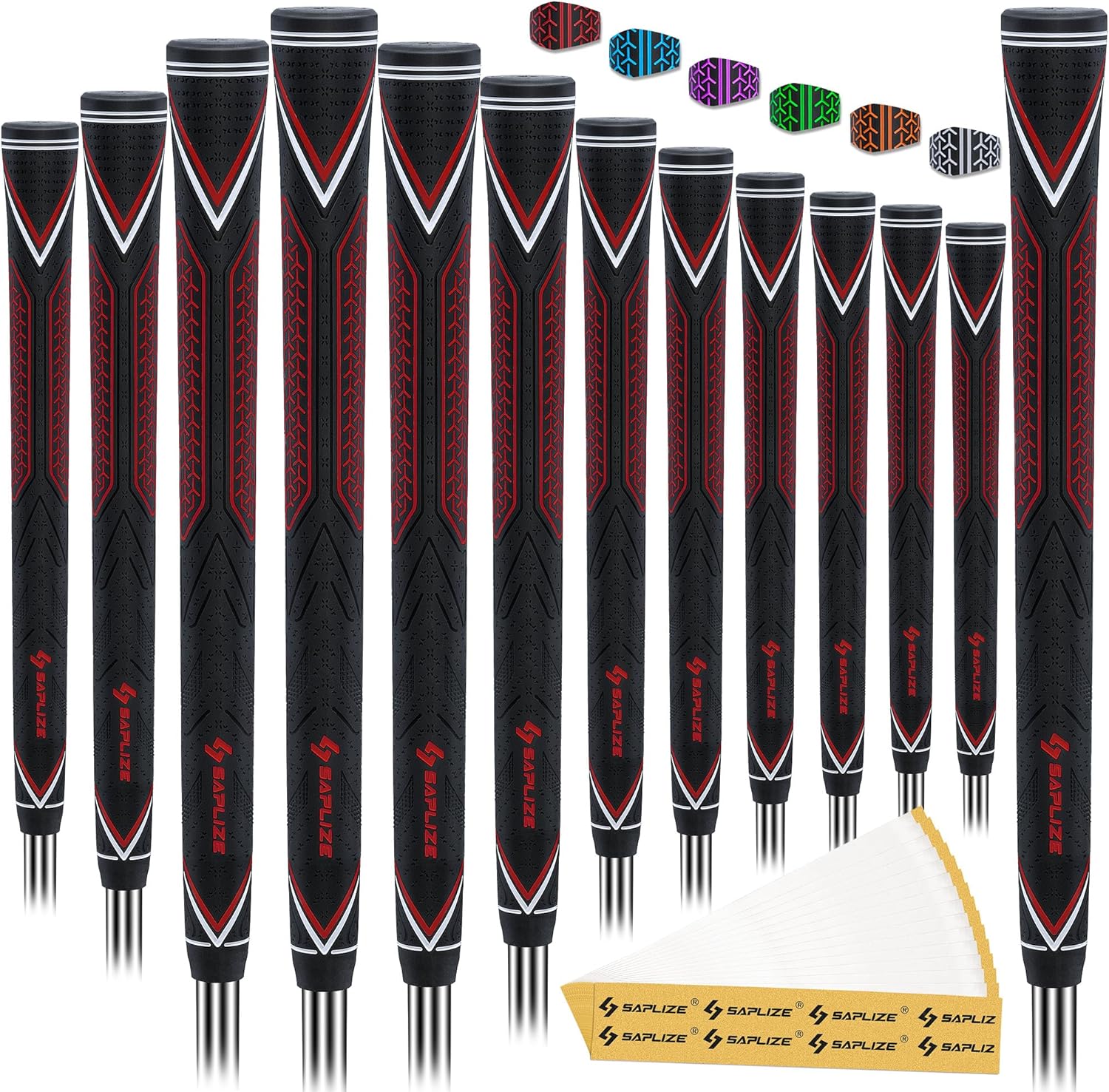 SAPLIZE High-Performance Rubber Golf Grips 13 Pack, High Shock Absorption, Non-Slip, Choose from 13 Grips with 15 Tapes or 13 Grips with All Kits, Available in Standard/Mid/Jumbo Sizes, CC10 Series