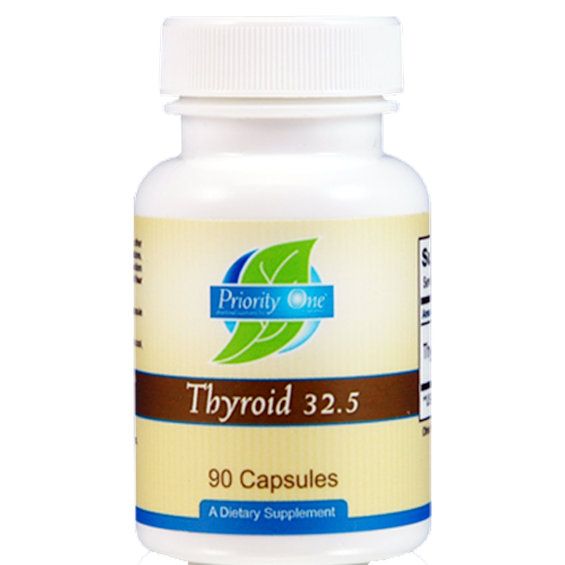 Serving Size: 1 Capsule Servings Per Container: 90 Disclaimer Amount Per Serving Thyroid 32.5 mg Other ingredients: Rice chelate, cellulose, dicalcium phosphate, silicon dioxide, capsule (gelatin,, purified water)