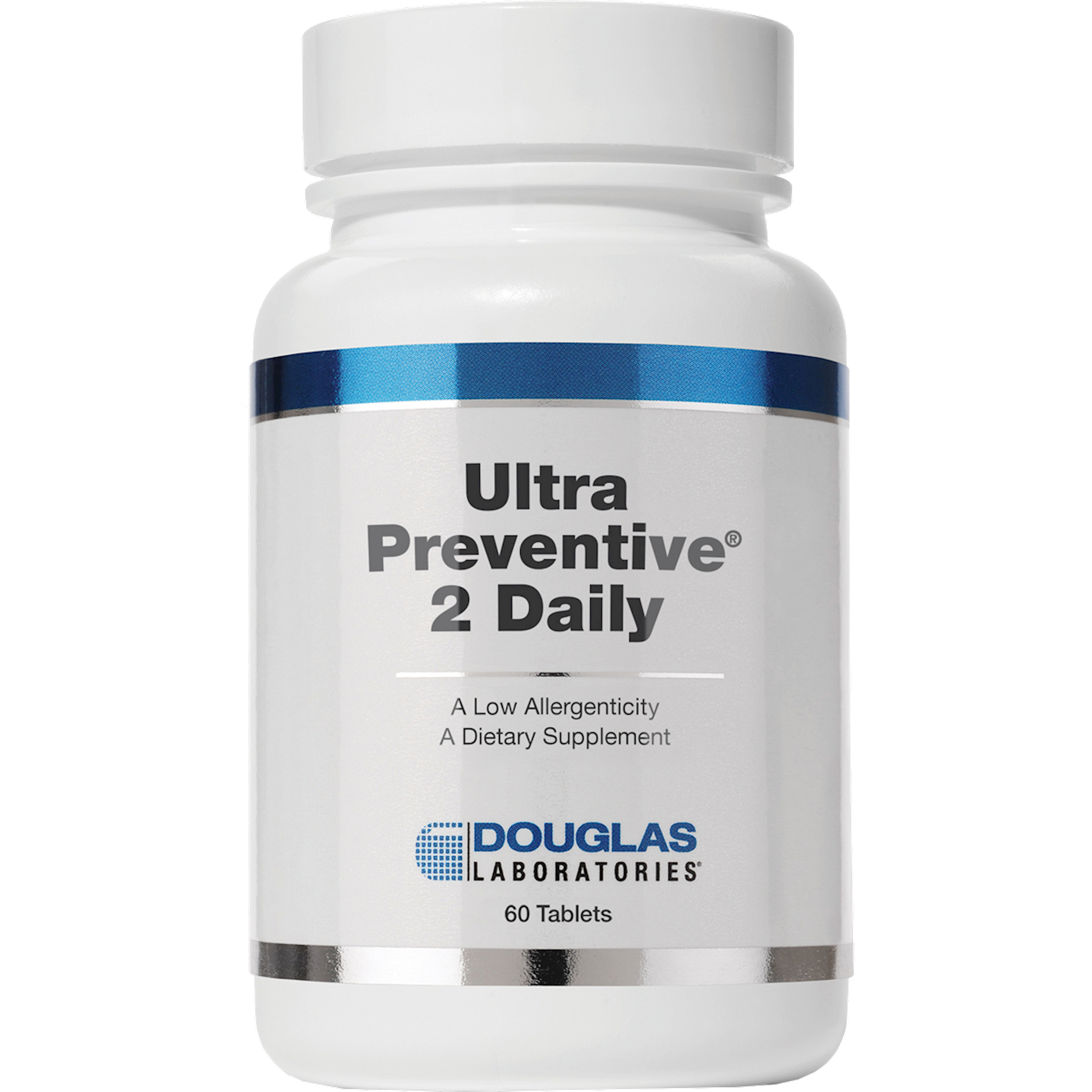 2 Daily easy swallow multivitamin/mineral tablets including methylated B vitamins, methylated resveratrol and phytonutrient blend Douglas Laboratories is proud to offer Ultra Preventive 2 Daily tablets with important vitamins and minerals plus antioxidant support from a proprietary phytonutrient blend of standardized spinach, blueberry and strawberry extracts, carotenoids, and methylated resveratrol in just 2 easy-to-swallow tablets daily. Astaxanthin is included as a carotenoid antioxidant for healthy aging. Activated forms of B vitamins in Ultra Preventive 2 Daily ensure proper utilization of vitamins.*